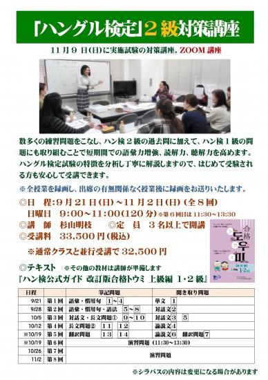 11月の「ハングル検定」2級対策講座(ZOOM)