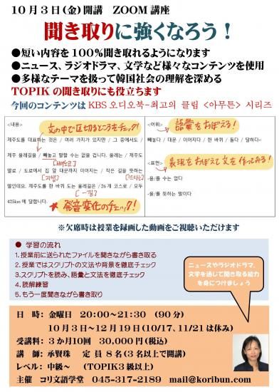 講 師: 承賢珠 定 員 8名(3名以上で開講)