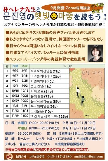 朴ヘレナ先生と문진영の「햇빛 마중」を読もう講座(ZOOM)